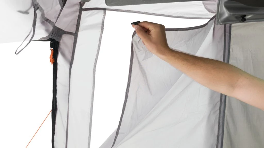 Securely pitched on the tailgate with twin guylines and a toggle-up door with ample walk-in height easily accessed or raised as a canopy for extra shelter from the sun or rain.