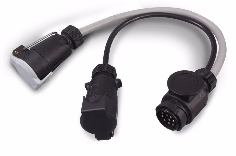 Allows connection of a caravan or Trailer fitted with 7 pin plugsย into a towbar fitted with a 13 pin socket.