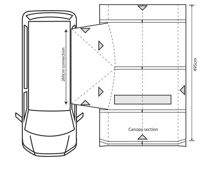 The addition of twin piping (6mm x 4mm) ensures compatibility across the vast majority of awing rail connections. We have implemented Phoenix Mesh fly screen panels in the side door to optimise airflow and keep insects at bay; an assisted healing smart material with the structurally incorporated ability to repair snag damage, typically caused by consistent usage. Simply manipulated, the mesh will then return to its original form. The integral front porch creates a convenient canopy area, where you can relax outdoors, while sheltered from the elements.