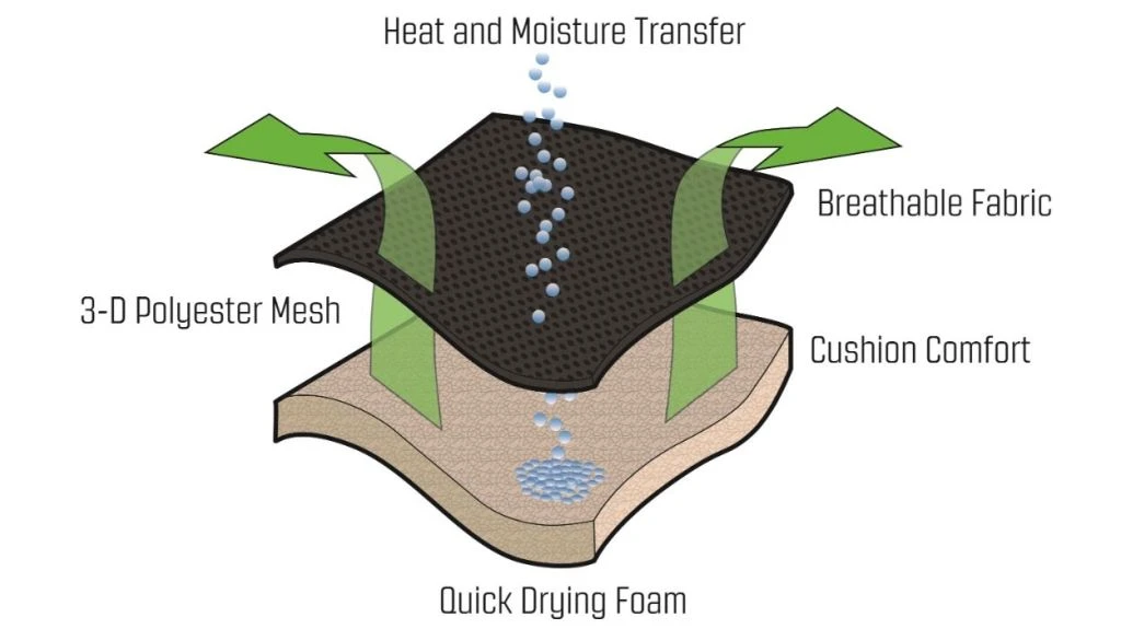 The Outwell Kenai from the Ergo Flexi Comfort Range combines a quick-drying padding with Textiline mesh fabric in a stylish black colour.