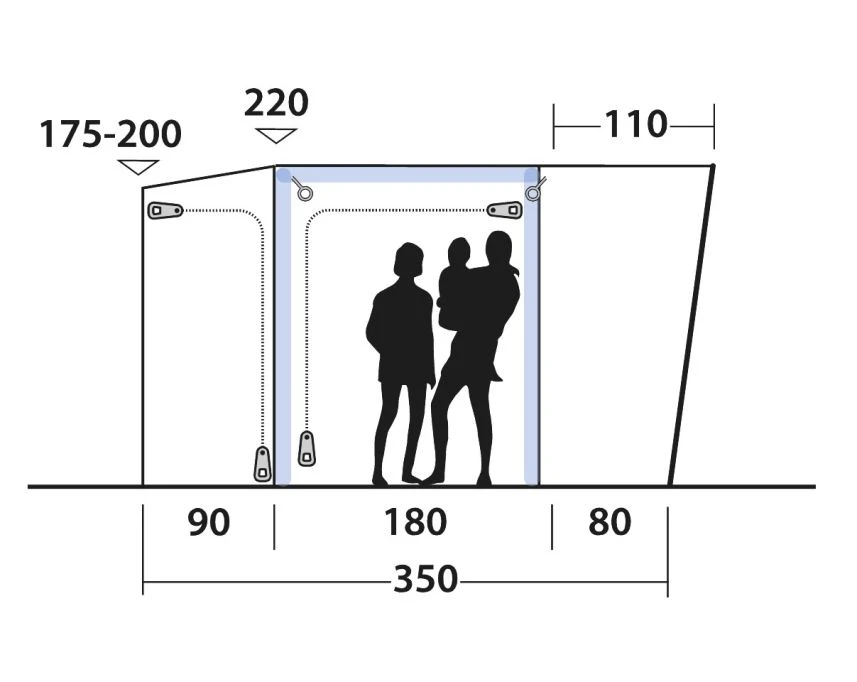 - Heavy-duty Outwell zips are easy to use, running securely and freely