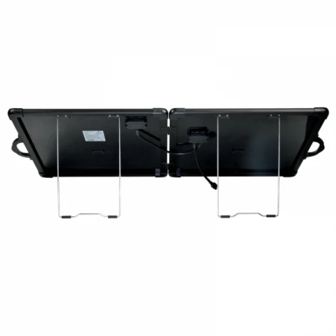 - Adjustable aluminium folding standย for positioningย the solar panels towards direct sunlight to maximise their output.