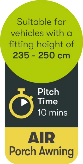 The awning is all about ease of use and value. It features an easy to use, minimal quick-fit pole system. The pitching is easy enough to be done by a single person if required. It uses the modern Quest Tec 150 fabric which is lightweight, quick drying and extremely waterproof making the awning easier to use and maintain. It is U.V. coated to help protect it from the harmful UV rays which helps extend its lifespan and gives you a U.P.F. rating of 50+ which is the highest possible giving you complete protection.