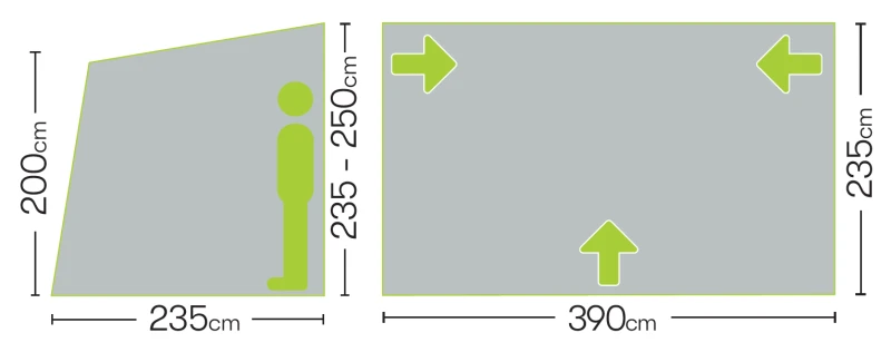 The awning is all about ease of use and value. It features an easy to use, minimal quick-fit pole system.ย The pitching is easy enough to be done by a single person if required. It uses the modern Quest Tec 150 fabric which is lightweight, quick drying and extremely waterproof making the awning easier to use and maintain. It is U.V. coated to help protect it from the harmful UV rays which helps extend its lifespan and gives you a U.P.F. rating of 50+ which is the highest possible giving you complete protection.