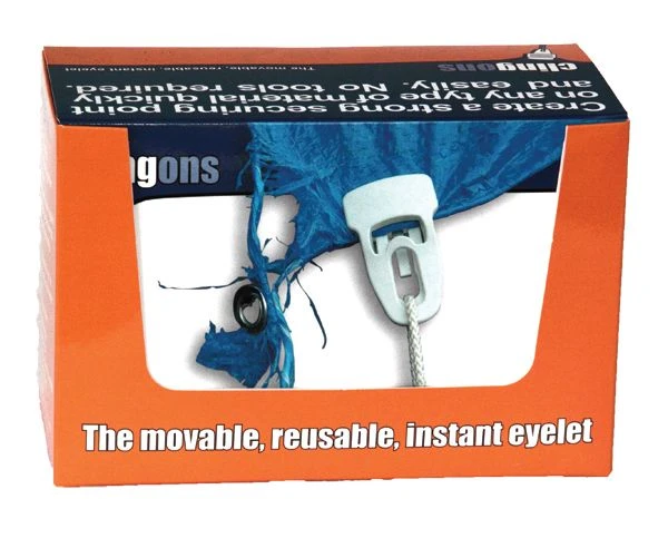 These Cling-on instant eyelets are perfect in the event that your tent or awning should get damaged in a storm or from somebody tripping over it.